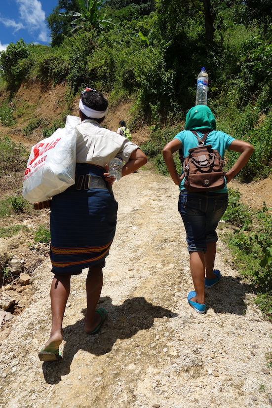 Le tuyau que nous avions (un chef de village introuvable et de toute façon plus en fonctions…) était crevé… Mais la chance nous sourit. Car c’est là qu’entre en scène notre bonne fée Yuliana. Yuliana est la seule mais très réputée femme guide de l’île. Et elle croise notre chemin avec son oncle et son client, un scientifique japonais Takuro. Elle nous apprend que tout commence à Sodan, un petit village où elle se rend justement. Leur voiture s’apprête à traverser la rivière, ce que notre chauffeur hésitait à faire. Or nous avons exactement la même voiture et nous leur suçons la roue (c’est le cas de le dire).