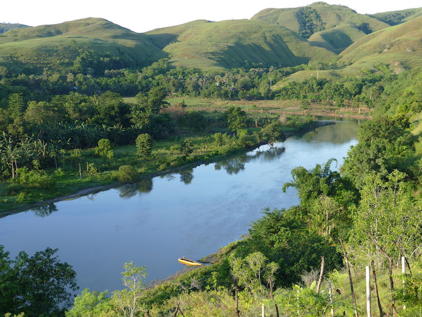 Au petit matin, nous partons voir le temple de Tanah Lot : traversée de rivière, 2 kilomètres entre les rizières et les plantations de potirons (?) avec leurs offrandes rituelles.