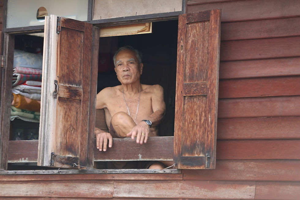 Suite du programme touristique de la journée : les Klongs, ces canaux qui partent de la Chao Praya River et irriguent une partie de la vieille ville. On y circule en bateau privé... enfin quand je dis on y circule... la moitié du temps, oui, l'autre, non, car il faut attendre longtemps, avant et dans les écluses qui les connectent à la rivière. Mais ça vaut tout de même la balade, à la fois touristique et animalière, vous allez voir.
