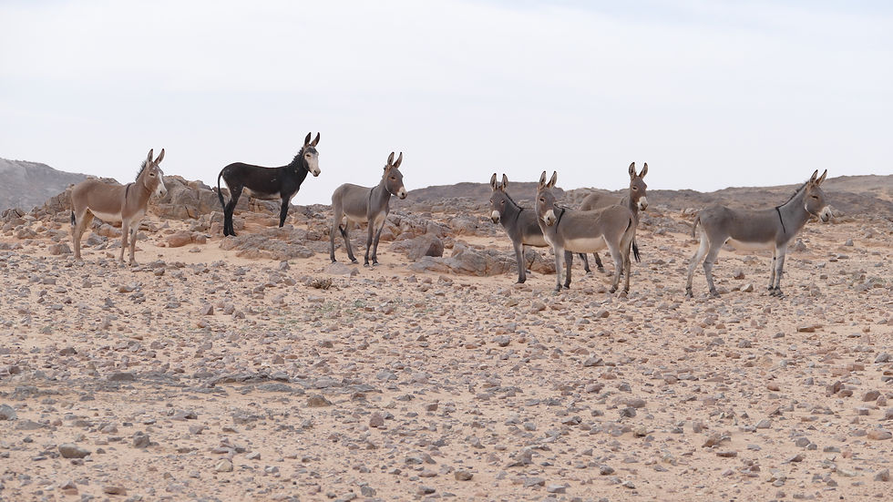 N'y voyez aucune relation, mais voilà nos premiers ânes sauvages. Des gazelles, nous ne verrons malheureusement que des traces et la course effrénée ("déchaînée", Hans?) de l'une d'entre elles, très loin de nous...