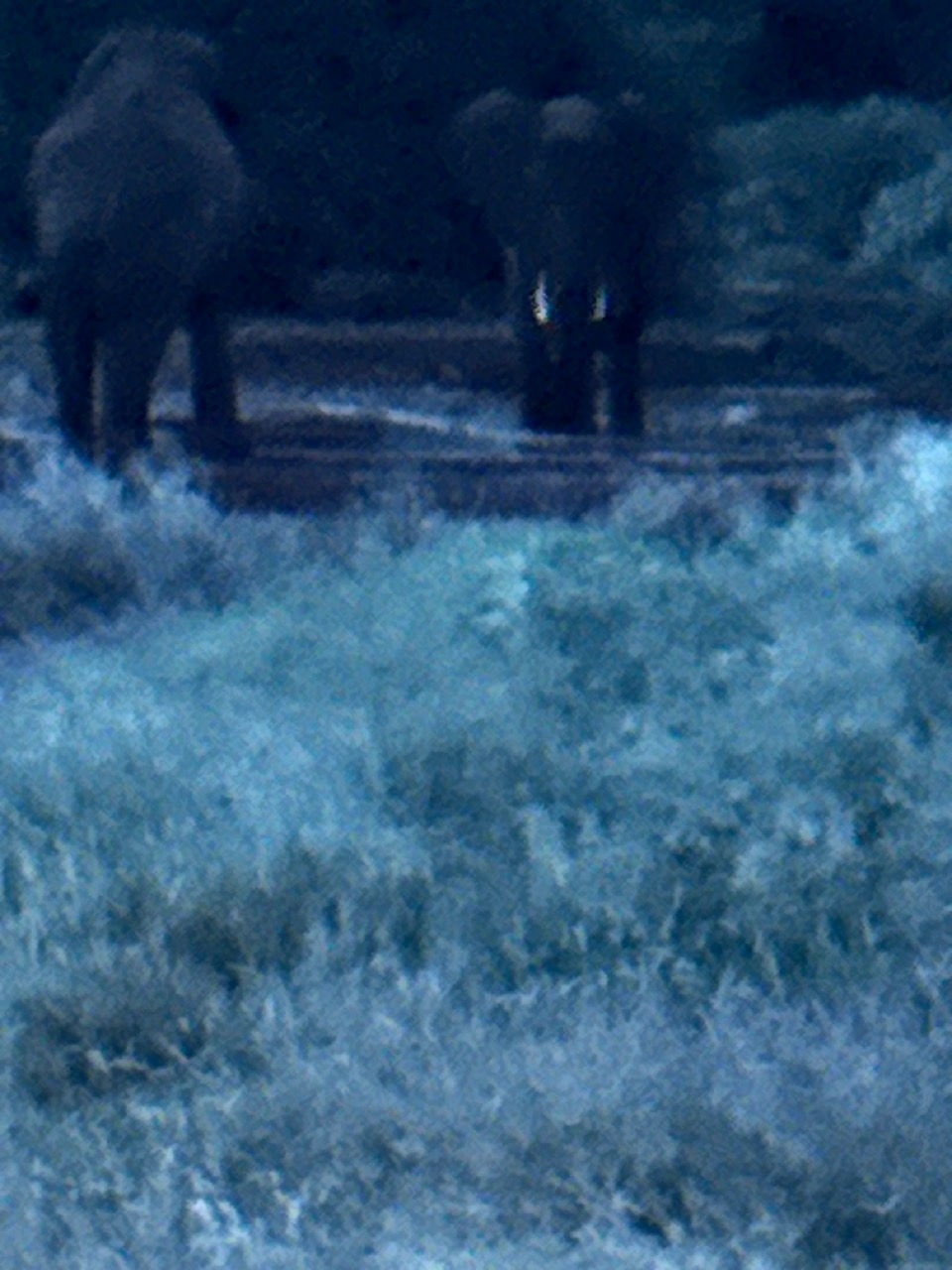 ... et le soir, après la pizza et la tombée de la nuit, deux grands mâles éléphants. Avant le troupeau de buffles évoqué plus tôt.