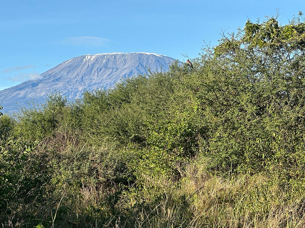 ... un paysage de carte postale sur fond de Kilimandjaro toujours aussi cabotin avec sa couronne de nuages